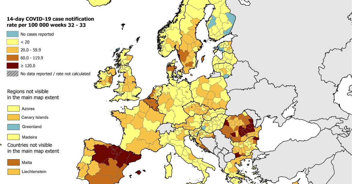 Nieuwe Corona Kaart Europees Centrum Voor Ziektepreventie Met Meer Oranje Gebieden In Spanje